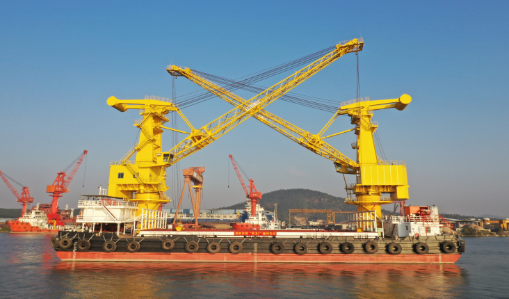 近日,四航局航通公司建造的“安力3”65米箱型吊桿駁船交付。