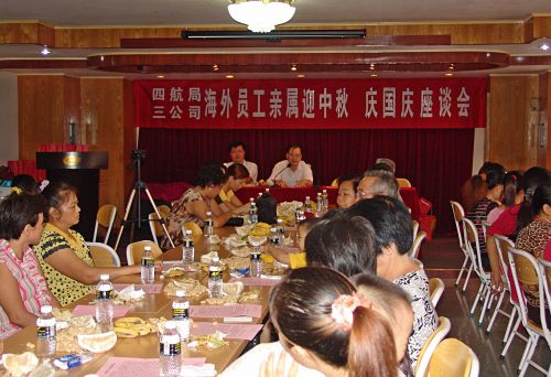 一公司、二公司、三公司在國(guó)慶前后舉辦海外項(xiàng)目職工家屬座談會(huì),送上慰問(wèn)品和慰問(wèn)金,為海外項(xiàng)目職工家屬排憂解難,并通過(guò)手機(jī)對(duì)有通訊條件的海外施工職工發(fā)送慰問(wèn)短訊。三公司讓每位員工家屬在攝像機(jī)前給海外親人說(shuō)幾句祝賀語(yǔ),將座談會(huì)攝像制成光碟,寄往海外。