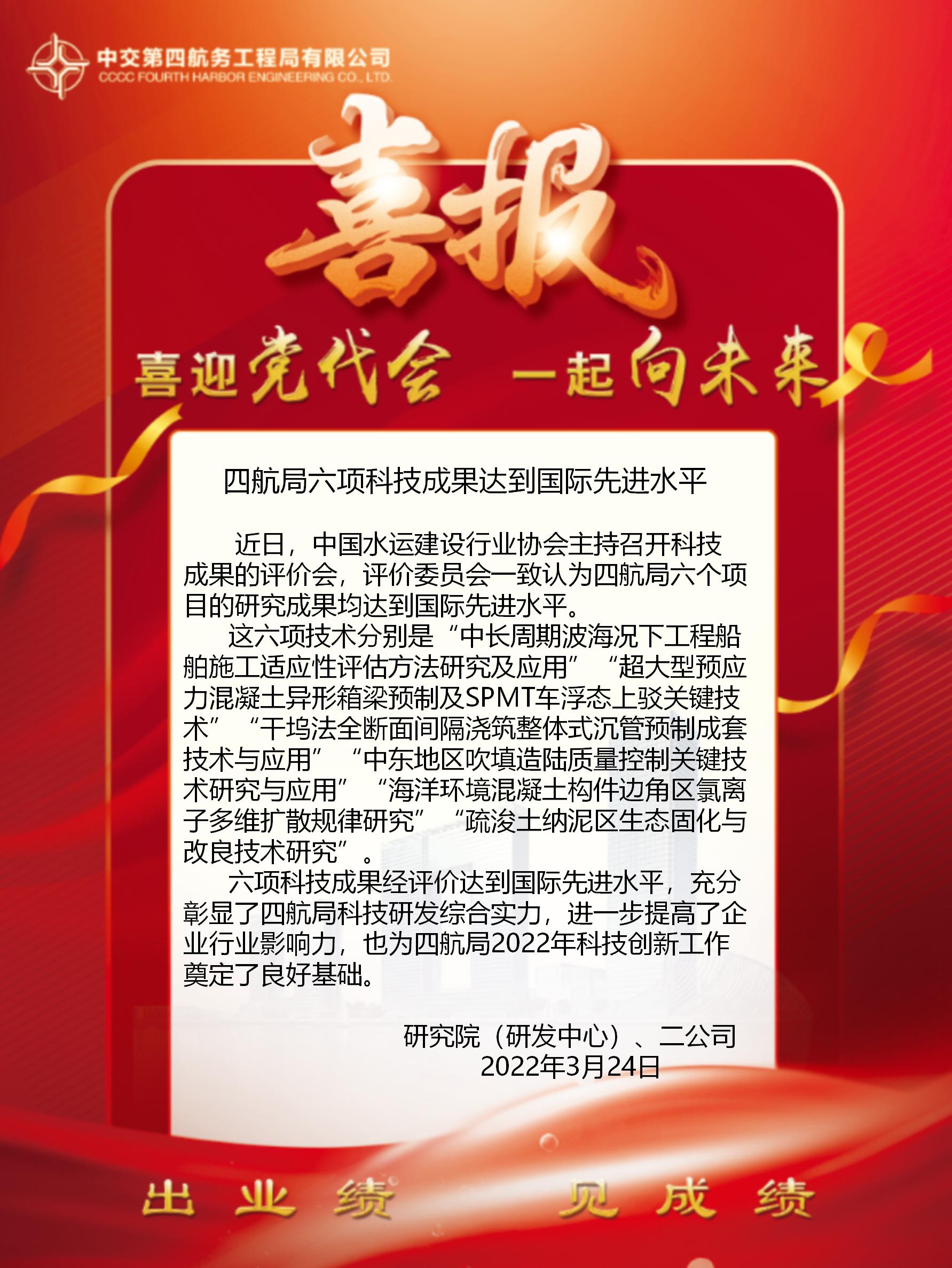 四航局六項科技成果達到國際先進水平