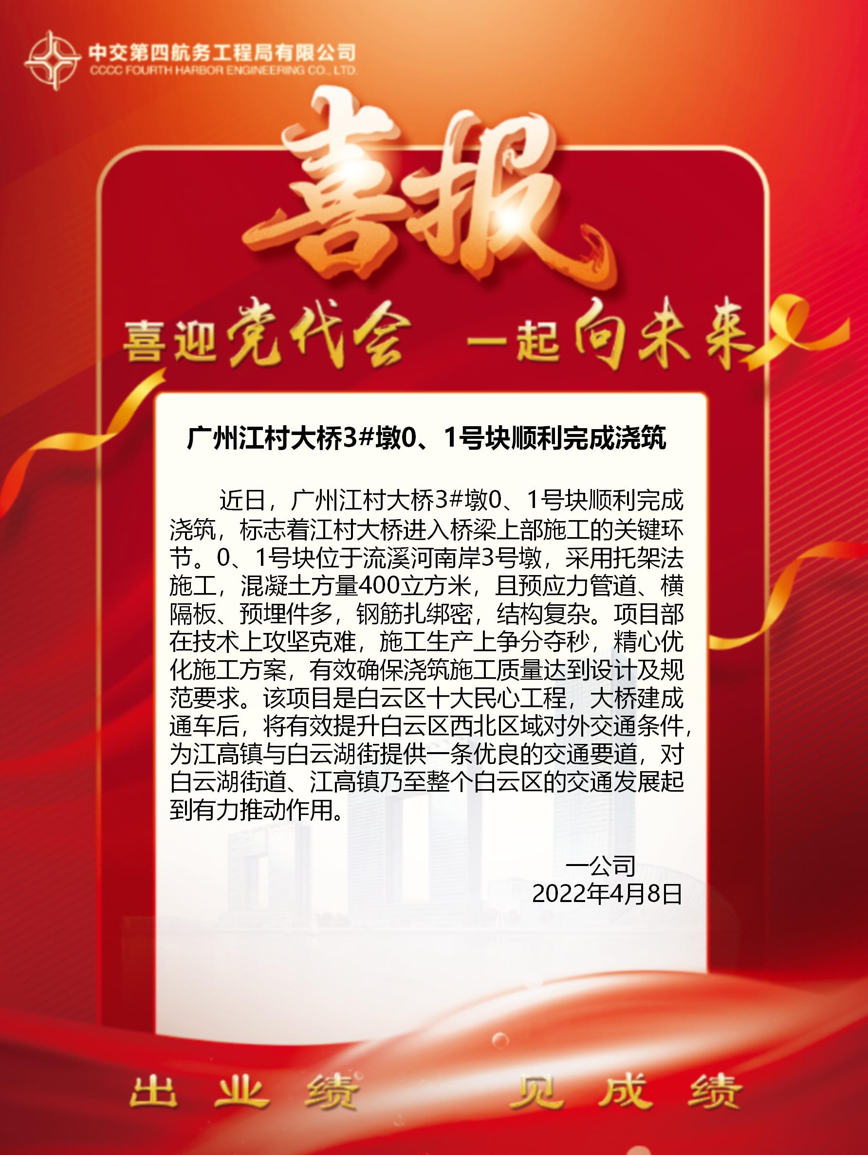 廣州江村大橋3#墩0、1號(hào)塊順利完成澆筑