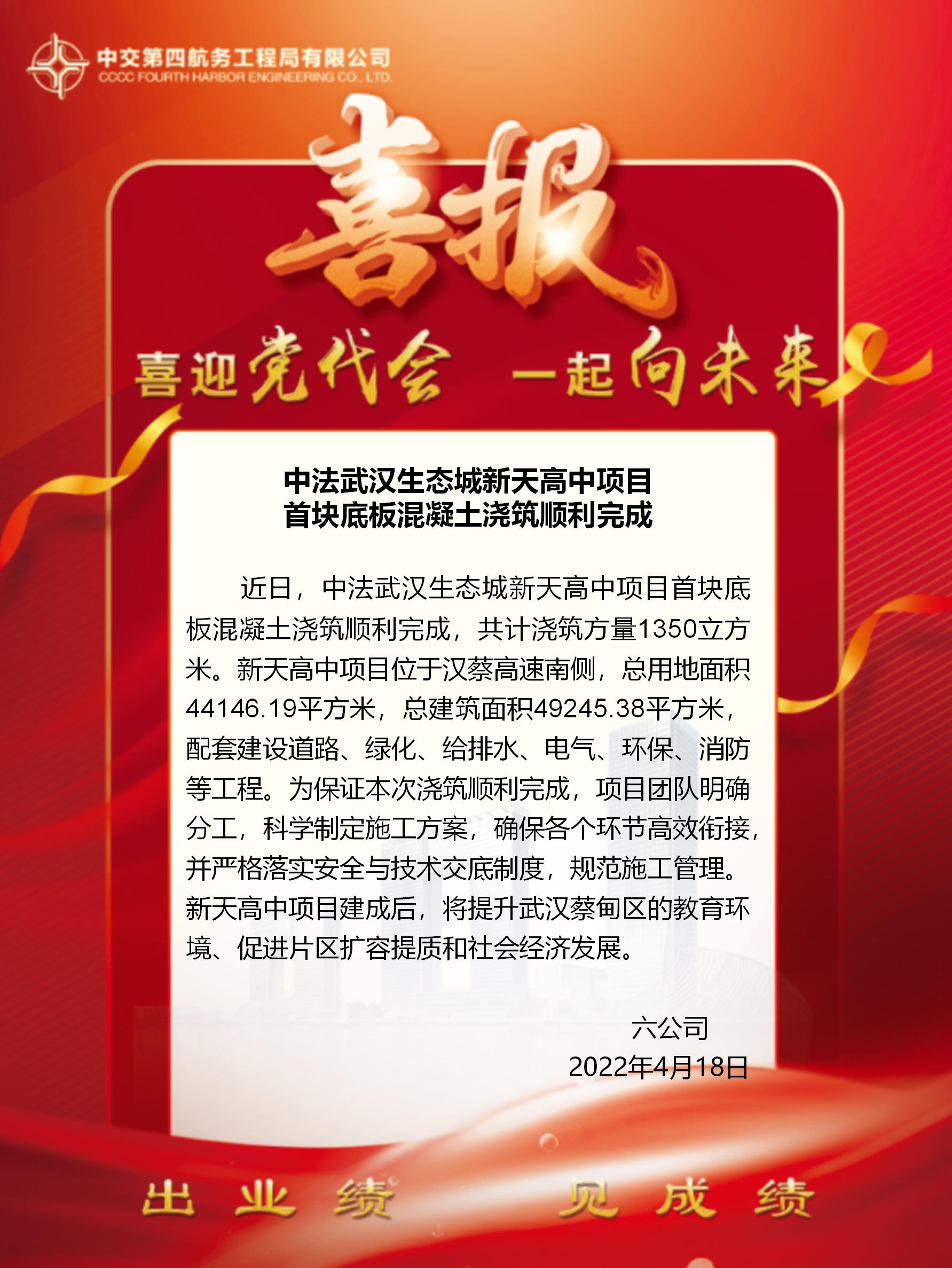 中法武漢生態(tài)城新天高中項(xiàng)目首塊底板混凝土澆筑順利完成
