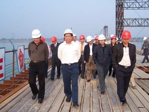 情況介紹會上,梁卓仁董事長、孫國強總經(jīng)理向張廳長一行介紹了四航局、中交集團的大好形勢和發(fā)展前景,感謝省廳領(lǐng)導(dǎo)一直關(guān)心四航局的發(fā)展,表示要在安全、優(yōu)質(zhì)、高效、和諧、廉潔的前提下,加快項目實施,著力打造"陽光工程、綠色通道"品牌,為廣東的交通建設(shè)作出新的貢獻!圖為張廳長(前排中)、梁董事長、孫總經(jīng)理在富灣大橋工地。(孫林森)