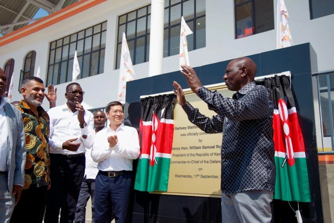 9月17日,肯尼亞蒙巴薩通勤米軌修復項目舉行通車儀式??夏醽喛偨y(tǒng)威廉·魯托、副總統(tǒng)基圖雷·金迪基、道路和交通部長戴維斯·奇爾奇爾出席儀式。