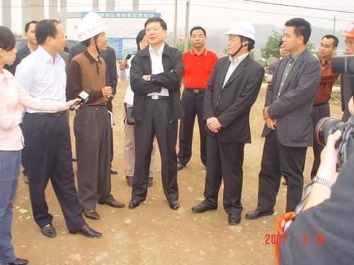 3月28日,佛山市委書記林元和、高明區(qū)委書記馬亮照、區(qū)長潘志文、副區(qū)長余中偉等一行,到一公司承建的廣明高速富灣特大橋工地視察工作。林書記充分肯定了目前的進展情況和感謝我局對佛山施工建設(shè)的貢獻,并稱四航局是"國家隊"。最后在要求廣明高速2008年能按期通車的同時,還希望四航局再接再厲,接下廣明高速佛山段的經(jīng)營權(quán)。 (蘇鐵忠)
