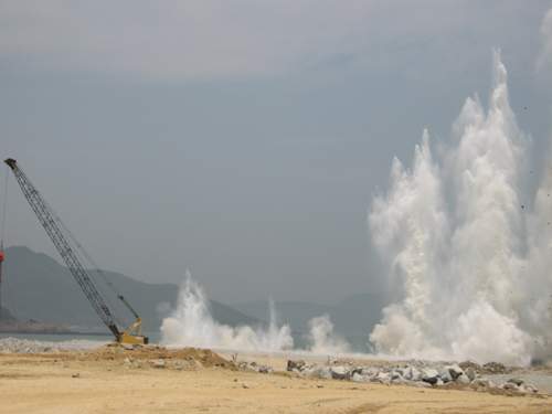 4月13日下午,寧德核電一期海域東護岸回填區(qū)新一次爆破開始,標志著寧德核電項目正式進入主體施工階段。自3月14日第一次爆破擠淤填石以來,經過一個月的努力, 0+000~0+090段(以F點為0點)已先抵達東護岸主體施工區(qū),截至4月13日東護岸回填區(qū)共處理爆填方量約40萬方。(張寶)
