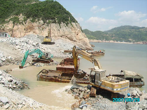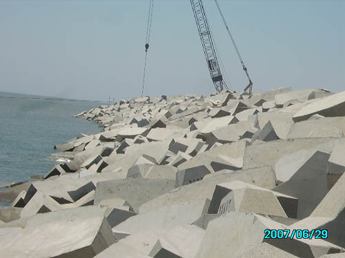 寧德核電區(qū)域天氣反復無常,加之臨海及海上作業(yè),潮位落差大,漲潮退潮快,再加上受供料方等多方面因素影響,施工一再推遲。為順利完成"6﹒30"防臺節(jié)點工期,專門召開趕工動員大會,制定周密詳盡的趕工計劃和工期倒排計劃,全體員工發(fā)揚敢打硬仗的作風,晝夜三班作業(yè)。挖機司機凌晨三點多就要趕到護岸理坡。工期緊,交叉作業(yè)多,水下擠淤爆破和挖泥、水上拋填各種規(guī)格的石料、護岸安裝扭王塊和推填理坡等同時進行,項目部全方位加強施工現(xiàn)場安全監(jiān)控,確保了趕工期間萬無一失。