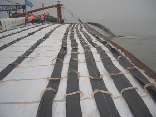 七月三日,三公司洋口港區(qū)接島引堤工程正式開工,項目部在洋口港區(qū)人工島施工現(xiàn)場舉行開工儀式。該工程引堤總長1588.6米,總工期為22個月。開工當日,順利鋪放砂肋軟體排1100平方米。