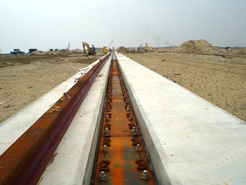 南沙二期9#、10#泊位軌道梁的施工任務(wù)于2007年7月28日順利完成。該工程后軌道梁總長約694米,共26段,為現(xiàn)澆鋼筋混凝土結(jié)構(gòu)。2007年3月15日正式開工,平均每月澆筑6~7段軌道梁。