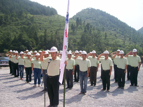2007年8月8日下午,湖北滬蓉西X8標(biāo)項目部舉行了隆重的青年突擊隊授旗儀式。滬蓉西高速公路指揮部副指揮長韓宏偉、黨委副書記洪文革,湖北恩施州常委、州直工委副書記、州工會主席楊陳清,恩施州團(tuán)委書記向紅林、團(tuán)委副書記黃明暢,四航局黨委副書記阮祥發(fā)、副總經(jīng)理周達(dá)培,一公司黨委書記萬軍杰,一公司總工李加才參加了授旗儀式。