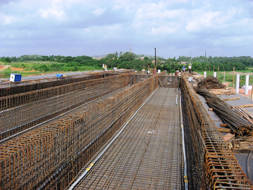 廣明高速公路第二合同段項(xiàng)目部SG1標(biāo)段在業(yè)主單位、設(shè)計(jì)單位、監(jiān)理單位及西二環(huán)南段業(yè)主等各方的大力支持下,全體員工齊心協(xié)力、頂烈日、冒酷暑,經(jīng)過(guò)五十余天的艱苦奮戰(zhàn),于8月17日6時(shí)28分順利完成大崗互通立交跨西二環(huán)南段高速公路全部箱梁的混凝土澆筑任務(wù),比原計(jì)劃提前1.5天。