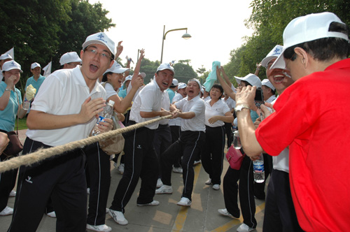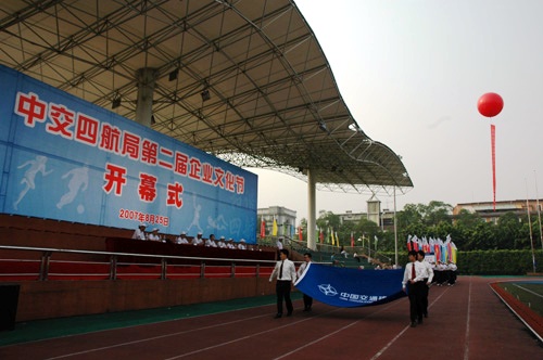 四航局工會主席肖干生主持開幕式,在運動員代表隊入場和升旗儀式后,四航局總經(jīng)理孫國強致辭。他介紹了四航局今年經(jīng)營生產(chǎn)的喜人形勢,強調(diào)建設(shè)企業(yè)文化的重要意義,高度評價了舉辦企業(yè)文化節(jié)對構(gòu)建和諧四航、推動又好又快發(fā)展的重要作用。董事長、黨委書記梁卓仁宣布四航局第二屆企業(yè)文化節(jié)正式開幕。在歡樂明快的樂曲中,四航局領(lǐng)導(dǎo)和所有運動員手拉著手,跳起了集體舞。開幕式還進行了體現(xiàn)力量、活力、團隊精神的拔河比賽和趣味體育比賽。