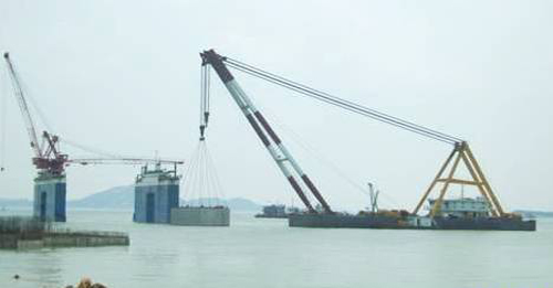 該項(xiàng)工程預(yù)制及出運(yùn)安裝沉箱共37件,根據(jù)施工計(jì)劃及船機(jī)統(tǒng)籌安排,分兩階段進(jìn)行出運(yùn)安裝,其中主碼頭工作平臺(tái)、靠船礅、系纜墩是圓筒結(jié)構(gòu),共13件,現(xiàn)已全部完成上部結(jié)構(gòu)澆注;工作船碼頭是方型小沉箱,共15件,現(xiàn)正在緊張有序地安裝上層蓋板;取水口沉箱共9件,重量約 3400噸,且結(jié)構(gòu)為異形結(jié)構(gòu)且規(guī)格不一,迄今為止,是我局所有承接工程的最大沉箱,現(xiàn)正在進(jìn)行安裝后沉箱接高二次澆注砼,以滿足海水泵、消防泵的安裝。