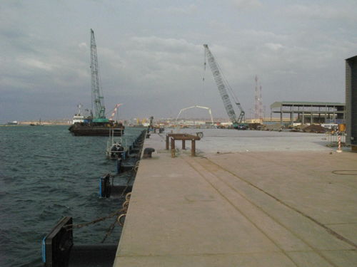 羅安達(dá)石油基地水工碼頭工程為重力式扶壁結(jié)構(gòu),總長(zhǎng)737.8米,前沿設(shè)計(jì)水深為-12.5米。該項(xiàng)目是安哥拉戰(zhàn)后重建重點(diǎn)項(xiàng)目之一,它的建成投產(chǎn),將大大增加羅安達(dá)港的吞吐量,緩減羅安達(dá)地區(qū)進(jìn)出口嚴(yán)重壓港狀態(tài)。它的每個(gè)節(jié)點(diǎn)動(dòng)態(tài),都受到安哥拉各級(jí)政府部門以及整個(gè)社會(huì)的高度關(guān)注,對(duì)開(kāi)拓安哥拉水工市場(chǎng)具有極大戰(zhàn)略意義!