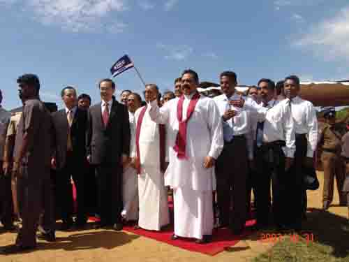 斯里蘭卡總統(tǒng)馬罕達(dá).拉賈帕克薩、中國(guó)駐斯國(guó)大使葉大波、中交副總裁陳奮健、四航局董事長(zhǎng)梁卓仁等出席了開(kāi)工儀式。斯里蘭卡總統(tǒng)和我國(guó)大使分別在開(kāi)工儀式上進(jìn)行了致辭。
