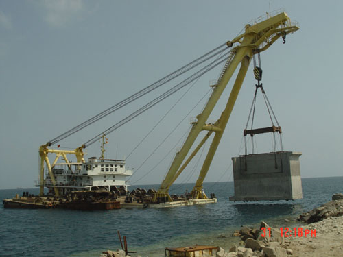 該項(xiàng)目位于蘇丹港港區(qū)進(jìn)出口航道的口門處,是整個(gè)進(jìn)出港口船舶的必經(jīng)之路,且該處航道狹小,船舶進(jìn)出頻繁,加上該處常風(fēng)方向?yàn)閷拸V的紅海,掩護(hù)條件差,風(fēng)浪集中,給施工帶來了一定的難度,這期間尤其是對(duì)基床拋石和起重安裝作業(yè)干擾和影響大。由于該項(xiàng)目起重安裝及水上拋填工作量大,作業(yè)時(shí)間長(zhǎng),給施工安全也帶來嚴(yán)峻考驗(yàn)。第一個(gè)節(jié)點(diǎn)的順利完成,給項(xiàng)目部增加了不少信心,現(xiàn)全體成員以高昂的斗志,往項(xiàng)目部的下一個(gè)目標(biāo)--完成12萬方基床拋石進(jìn)發(fā)。