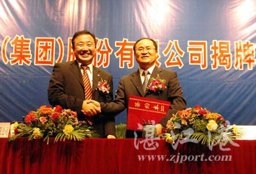 圖為梁卓仁董事長(zhǎng)與湛江港(集團(tuán))股份有限公司胡建華副董事長(zhǎng)(圖右)