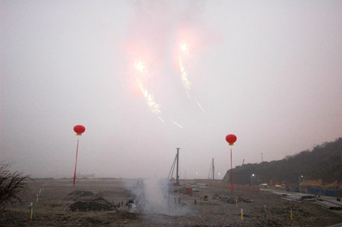 該工程自元旦中標(biāo)以來,項(xiàng)目部當(dāng)即開展迅速有序的籌備工作,克服連日來的大風(fēng)大霧天氣無法通航、物資設(shè)備進(jìn)場(chǎng)受阻、地質(zhì)情況復(fù)雜、施工場(chǎng)地提供有限等困難,在十天內(nèi)完成了前期的施工籌備、臨時(shí)設(shè)施搭建、物資進(jìn)場(chǎng)以及選擇、組織PHC管樁、灌注樁等合作隊(duì)伍的設(shè)備人員進(jìn)場(chǎng)工作。目前各分項(xiàng)工程施工逐漸步入正軌,各項(xiàng)生產(chǎn)工作正有條不紊地展開,趕工高潮即將形成。