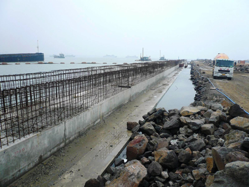 近日,??诟鄱诖a頭項目部接到業(yè)主通知,要求碼頭主體和過渡段工程必須在8月份以前完工,比原計劃10月份整整提前兩個月。面對工期的重大調(diào)整,項目部加強施工組織管理,爭分奪秒,加快施工進度,掀起了大干高潮。