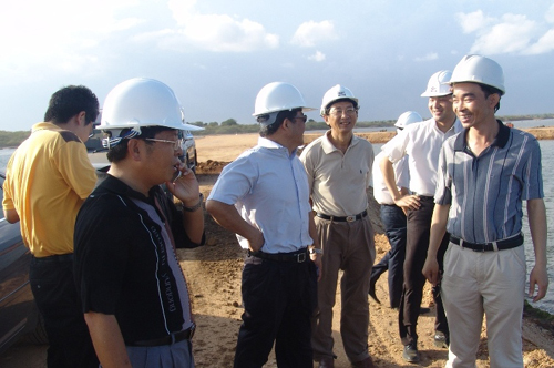2008年2月21日,正值中國(guó)的元宵佳節(jié),四航局斯里蘭卡漢班托塔項(xiàng)目部迎來(lái)了中國(guó)駐斯大使館朱參贊、曹秘書(shū)等領(lǐng)導(dǎo)來(lái)現(xiàn)場(chǎng)視察。大使館領(lǐng)導(dǎo)查看了現(xiàn)場(chǎng)碎石場(chǎng)、預(yù)制廠、圍堰等施工區(qū)域,對(duì)A生活區(qū)進(jìn)行詳細(xì)的考察,并在會(huì)議室召開(kāi)座談會(huì)。會(huì)上大使館領(lǐng)導(dǎo)對(duì)項(xiàng)目的順利進(jìn)展給與高度的評(píng)價(jià),稱贊四航局不愧是港口建設(shè)的正規(guī)軍,在短短幾個(gè)月時(shí)間完成兩個(gè)營(yíng)區(qū)建設(shè),碎石場(chǎng)、攪拌站、吊機(jī)的設(shè)備安裝,圍堰推填等大量工作,與斯里蘭卡其他國(guó)際工程橫向比較名列前茅。他們表示將把漢班托塔港工程作為斯里蘭卡工程施工的典范,邀請(qǐng)國(guó)內(nèi)有關(guān)部門(mén)前來(lái)參觀,并積極推進(jìn)漢班托塔港二期等大型項(xiàng)目的繼續(xù)合作。