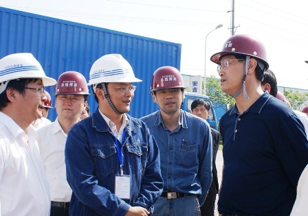 5月6日,鐵道部副部長(zhǎng)盧春房在中交集團(tuán)副總裁陳云等領(lǐng)導(dǎo)的陪同下,視察了四航局承建的京滬高鐵六標(biāo)七工區(qū)跨寶安公路特大橋梁施工現(xiàn)場(chǎng)。