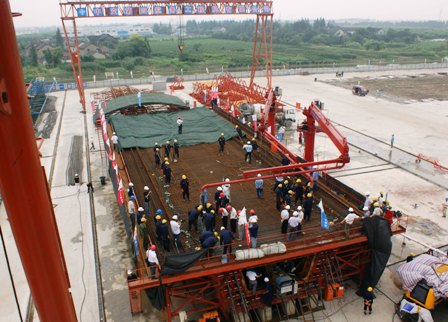 京滬高鐵上海嘉定制梁場首榀箱梁順利澆筑