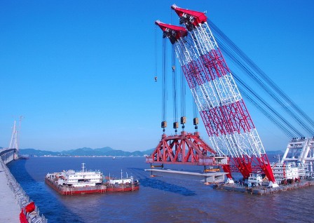 目前,金塘大橋項(xiàng)目部全力組織船舶調(diào)遷工作,"四航奮進(jìn)"號(hào)船組預(yù)計(jì)本月19日起航前往青島,投入青島海灣大橋工程建設(shè)中。