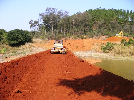 三水制梁場所處地多面環(huán)山,不利機械設(shè)備進(jìn)場。便道施工前,貴廣鐵路二項目部征遷辦通過努力,于1月12日在三水區(qū)西南洲邊村征用了20畝多土地作為梁場先期拌和站使用場地,并與當(dāng)?shù)卮逦瘏f(xié)商,同意修通一條約1公里的施工便道。在便道施工過程中,二項目部技術(shù)人員克服了便道起伏不平、魚塘阻隔、樹林茂密等困難。
