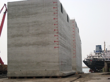 該工程自2008年6月26日開工以來,已完成44個(gè)沉箱的預(yù)制工作,堆滿約 2.2萬平方米的預(yù)制場地。目前,基床水下施工已超計(jì)劃完成,半潛駁船計(jì)劃于本月底進(jìn)場,項(xiàng)目部員工現(xiàn)正加快步伐,有條不紊地進(jìn)行沉箱的各項(xiàng)安裝準(zhǔn)備工作。