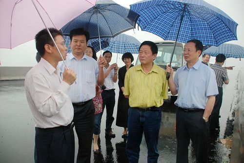 4月16日下午,高明區(qū)委書記馬亮照、區(qū)交通局長江仲佳一行在四航局總經(jīng)理孫國強(qiáng)和顧問沈長林的陪同下冒雨專程視察了廣明高速公路全線。