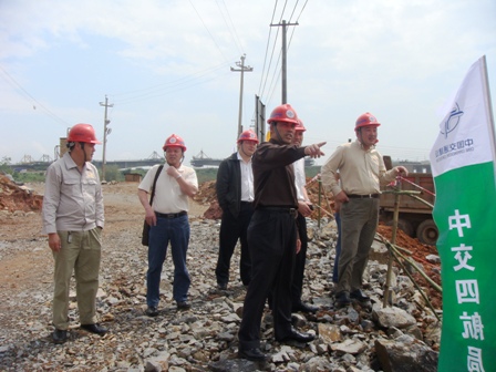 當天,梁卓仁董事長一行還冒雨到西江航運干線桂平二線船閘工程施工現場檢查指導。在認真聽取了項目部施工情況匯報后,梁卓仁強調,項目部要嚴抓生產安全施工管理,嚴把質量關,鑄造精品工程,加強與合作隊伍的溝通協調,安全、優(yōu)質、圓滿完成桂平二線船閘工程的施工任務,為四航局下一步在桂平的經營工作打下良好基礎。