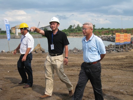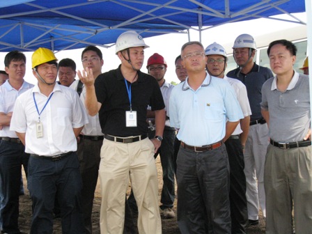 7月2日,??谑懈笔虚L(zhǎng)袁光平一行在海南港航控股副總裁麥衛(wèi)斌等的陪同下,蒞臨三公司??隈R村港區(qū)擴(kuò)建一期項(xiàng)目部工地視察指導(dǎo)工作。