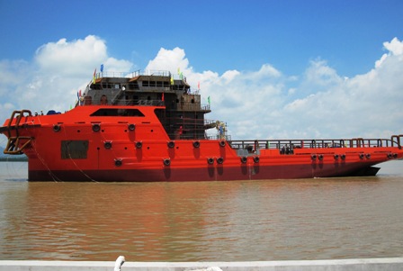 該船總長(zhǎng)78米,型寬20米,型深6.5米,設(shè)計(jì)吃水4.8米,設(shè)計(jì)航速12節(jié),可供150人居住、工作;雙漿雙舵、雙主機(jī),兩個(gè)電力驅(qū)動(dòng)艏側(cè)推;具有DP2動(dòng)力定位和四點(diǎn)定位功能,能為海洋工程提供多功能服務(wù);入級(jí)ABS(美國(guó)船級(jí)社),可在無限航區(qū)航行。