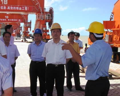 在碼頭施工現(xiàn)場,李金早認真聽取了工程技術(shù)人員對當前的安全生產(chǎn)情況匯報,對該項目部的生產(chǎn)進度、安全管理給予充分肯定,同時并希望項目部再接再厲打好攻堅戰(zhàn),確保今年底欽州港保稅區(qū)封關(guān)運作。