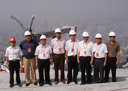 張國興副主席一行前往電視塔454米平臺視察施工現(xiàn)場,并召開現(xiàn)場座談會。張副主席在聽取了有關(guān)該項目特點和施工進展情況的匯報后,對項目部前一階段的工作給予肯定,并就施工隊伍建設(shè)、安全生產(chǎn)等方面提出三點要求:一是要結(jié)合該項目的安全生產(chǎn)要求,建立嚴(yán)格的管理保障制度,對高空作業(yè)人員采用半軍事化的管理模式,做到管理到位、操作人員防護和保護措施到位、操作人員培訓(xùn)和教育到位、操作人員的后勤生活保障到位;二是要高度重視一線作業(yè)人員的生命安全,把安全工作做到每一個細(xì)節(jié)上;三是要加強對工人的培訓(xùn)教育,實現(xiàn)思想上重視,行動上自覺遵守,真正做到"我要安全,我會安全"。