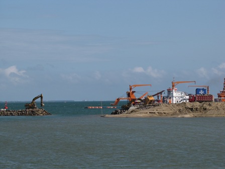11月14日,湛江港霞山港區(qū)散貨碼頭護(hù)岸圍堰工程勝利合攏,為下一步施工奠定良好基礎(chǔ),同時掀起了全面施工的新高潮。