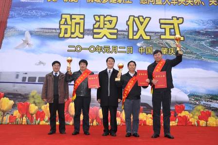 1月2日,貴廣鐵路"情暖參建職工"慰問暨火車頭獎杯、獎?wù)骂C獎活動隆重舉行,四航局貴廣項目喜獲中華全國鐵路總工會授予的2009年客運專線建設(shè)火車頭獎杯,四航局貴廣鐵路工程指揮部常務(wù)副指揮長盧玉榮和三項目經(jīng)理部鄧宏觀榮獲2009年客運專線建設(shè)火車頭獎?wù)隆?/P>