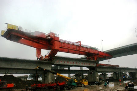 自2008年12月10日京滬項目部成功架設(shè)第一孔箱梁以來,項目部多次掀起趕工高潮,提出"決戰(zhàn)搶工期、決勝保節(jié)點"的攻堅口號,通過技術(shù)革新、工藝改進、加強設(shè)備保養(yǎng)維護,不斷攻克技術(shù)瓶頸,成功將架橋機過提籃拱拆解安裝時間由10天縮短到6天,架橋機每孔箱梁架設(shè)時間由8.5小時壓縮到3.5小時,大大提高了箱梁架設(shè)工效,創(chuàng)造出一個月內(nèi)架橋機兩次過提籃拱、架設(shè)箱梁60片的輝煌成績,且各項安全、進度、質(zhì)量指標檢查均符合標準,獲得各界的一致好評。