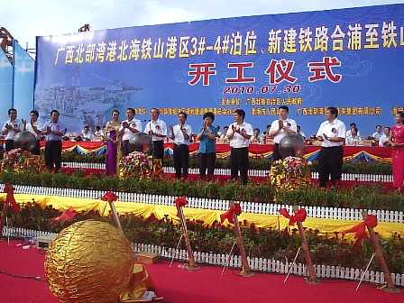 7月30日,廣西北海鐵山港區(qū)3-4號(hào)泊位碼頭工程正式開(kāi)工,廣西壯族自治區(qū)主席馬飚出席開(kāi)工儀式并宣布該工程開(kāi)工。