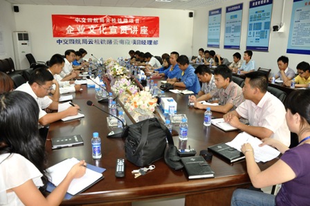 本次講座邀請四航局企業(yè)文化部鄭祖平副主任宣講。主要介紹四航文化內(nèi)涵、四航核心理念、中交標(biāo)識系統(tǒng)和四航鐵路項目文化建設(shè)的要求。同時,還講授了如何做好宣傳報道和新聞攝影工作,以及如何應(yīng)對新聞危機(jī)。