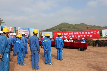 9月20日,四航局云桂鐵路項(xiàng)目部舉行首開工點(diǎn)--麻栗樹1#大橋開工儀式,這標(biāo)志著四航局云桂鐵路項(xiàng)目由前期施工準(zhǔn)備階段正式進(jìn)入主體工程施工階段。四航局黨委副書記張猛出席開工儀式并宣布開工,丘北指揮部、監(jiān)理項(xiàng)目部派員出席儀式。