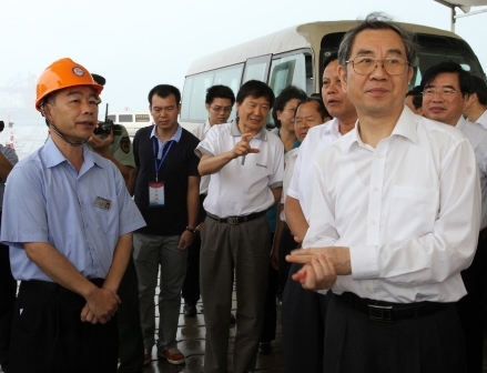 7月12日,廣西壯族自治區(qū)主席馬飚在防城港市委書記禤沛鈞、市長(zhǎng)莫恭明、防城港務(wù)集團(tuán)總經(jīng)理謝毅等領(lǐng)導(dǎo)的陪同下,到三公司承建的防城港403-407號(hào)泊位碼頭項(xiàng)目視察指導(dǎo)工作。
