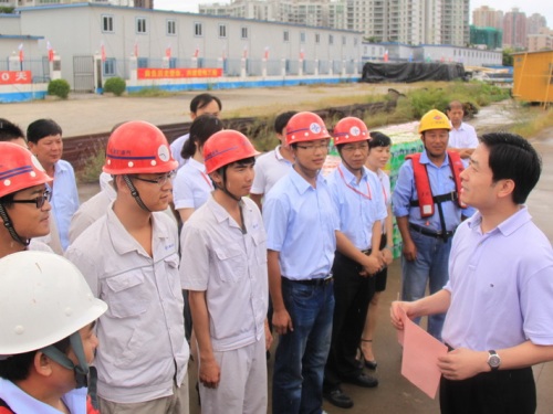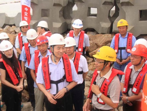 甘霖一行冒雨親臨施工現(xiàn)場,聽取了工程介紹,視察了工程進(jìn)展情況,并為港珠澳大橋人工島建設(shè)者送上清涼飲料,勉勵大家再接再厲,為港珠澳大橋的建設(shè)貢獻(xiàn)力量。
