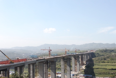 該橋為全線控制性工程,大橋全長860米,主橋為65+2×120+65m預應力砼連續(xù)剛構,是山西省首座雙向六車道大跨徑橋梁。自開工以來,太陽八標項目部克服征拆難、工期緊、技術難度大等不利因素,精心組織,不斷優(yōu)化施工方案,加大人力、物力及設備投入,同時與設計院和業(yè)主積極溝通,通過變更樁長、合攏段施工順序等措施切實加快施工進度,受到山西省交通廳和業(yè)主的充分肯定。