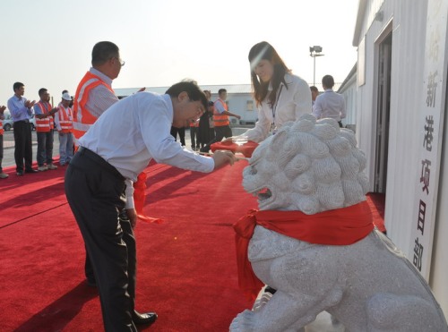 10月10日,中交股份董事長(zhǎng)周紀(jì)昌在中港總經(jīng)理孫子宇、四航局總經(jīng)理孫國(guó)強(qiáng)、副總經(jīng)理李惠明等陪同下,到多哈新港項(xiàng)目檢查指導(dǎo)工作并參加開工奠基儀式。