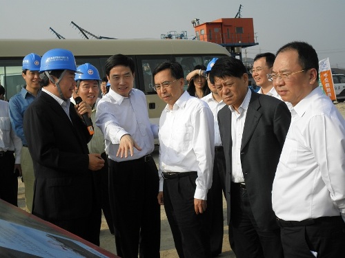 10月27日,廣東省委常委、常務(wù)副省長朱小丹在珠海市委書記、市人大常委會主任甘霖等領(lǐng)導(dǎo)的陪同下,到四航局參建的珠海高欄港干散貨碼頭項目和珠海秦發(fā)煤炭碼頭項目考察。