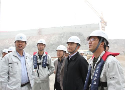 在牛頭島沉管預(yù)制廠施工現(xiàn)場,陳云副總裁聽取了關(guān)于沉管預(yù)制廠整體布局、施工工程進度、沉管預(yù)制等關(guān)鍵工藝以及沉管預(yù)制設(shè)備、人員、管理制度等工作準(zhǔn)備情況的匯報,深入施工深塢現(xiàn)場,查看了正在進行鋼扶壁安裝的塢門大沉箱和正在緊張調(diào)試的高壓發(fā)電機房;在鋼結(jié)構(gòu)廠房,陳云副總裁一行參觀了即將開始足尺模型試驗的2#沉管澆筑區(qū)。