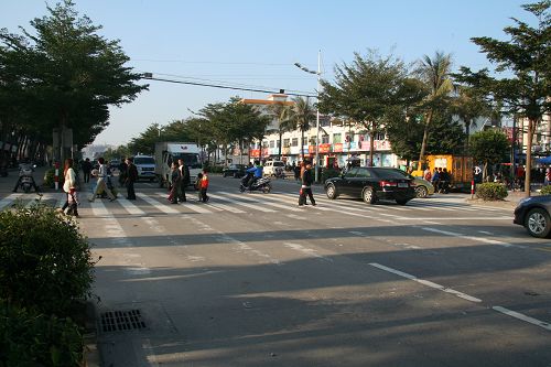 三公司霞海大院門口位于湛江市海濱大道霞海路段,由于該路段來往人員多,密度大。在此路段交通安全設施完善之前,此路段交通事故頻發(fā)。