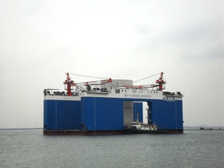 3月4 日,載著廣西欽州港30萬噸級油碼頭工程最后一個圓筒的“廣州號”浮船塢,緩緩駛?cè)霘J州港碼頭施工現(xiàn)場,標志著廣西欽州港30萬噸級油碼頭工程18個大圓筒全部順利搬運完成,為后續(xù)工程的順利推進奠定了堅實的基礎(chǔ)。