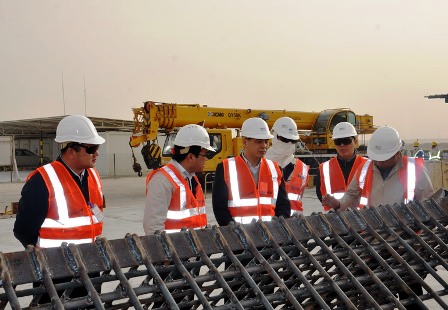 呂衛(wèi)清一行聽取了多哈新港項(xiàng)目工程簡介及施工進(jìn)展、技術(shù)管理、QC/QA及HSE等各項(xiàng)工作的情況匯報(bào),參觀了項(xiàng)目施工現(xiàn)場,深入了解各分項(xiàng)工程施工工藝中的重點(diǎn)、難點(diǎn)問題,對工程計(jì)算和實(shí)驗(yàn)工作給予指導(dǎo),并與技術(shù)人員進(jìn)行了充分的研究討論,給予重要的指導(dǎo)性意見。