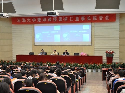 交流期間,河海大學(xué)舉行了“河海大學(xué)兼職教授梁卓仁董事長(zhǎng)專題報(bào)告會(huì)”,逾200人參加了報(bào)告會(huì)。會(huì)上,梁董事長(zhǎng)受聘為河海大學(xué)兼職教授,校長(zhǎng)王乘親自向梁董事長(zhǎng)頒發(fā)了兼職教授聘書,學(xué)生代表為梁董事長(zhǎng)佩戴了河海大學(xué)?;詹⑺蜕硝r花。梁卓仁在答謝時(shí)表示,河海大學(xué)與四航局長(zhǎng)期合作,除了人才輸送培養(yǎng)、學(xué)歷深造、學(xué)術(shù)交流外,今年六月還簽約共建了研究生培養(yǎng)基地,首批12名學(xué)生已進(jìn)入基地實(shí)習(xí)。該基地建設(shè)平臺(tái)將進(jìn)一步加大雙方全方位合作,充分利用雙方資源,在人才引進(jìn)、員工培養(yǎng)、科研創(chuàng)新等方面創(chuàng)造更大成績(jī)。